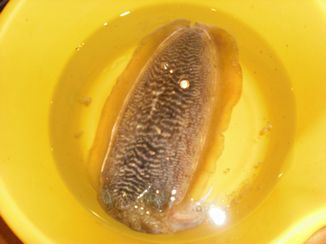当館の海上筏で、大きなイカを釣りあげました。すごーィ!!